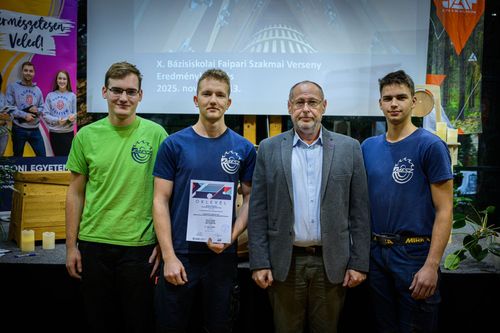 A Soproni Egyetem Faipari Mérnöki és Kreatívipari Kara idén tizedik alkalommal rendezte meg a kétnapos Bázisiskolai Szakmai Faipari Versenyt. A 14 középiskola közül a MÁSODIK helyen végeztek diákjaink! Gratulálunk Islai Ferenc 13.A, Nagy Márton 13.A, Kocsis Máté 12.A osztályos diákjainknak és a felkészítő oktató kollégánknak Nemes Zoltánnak!